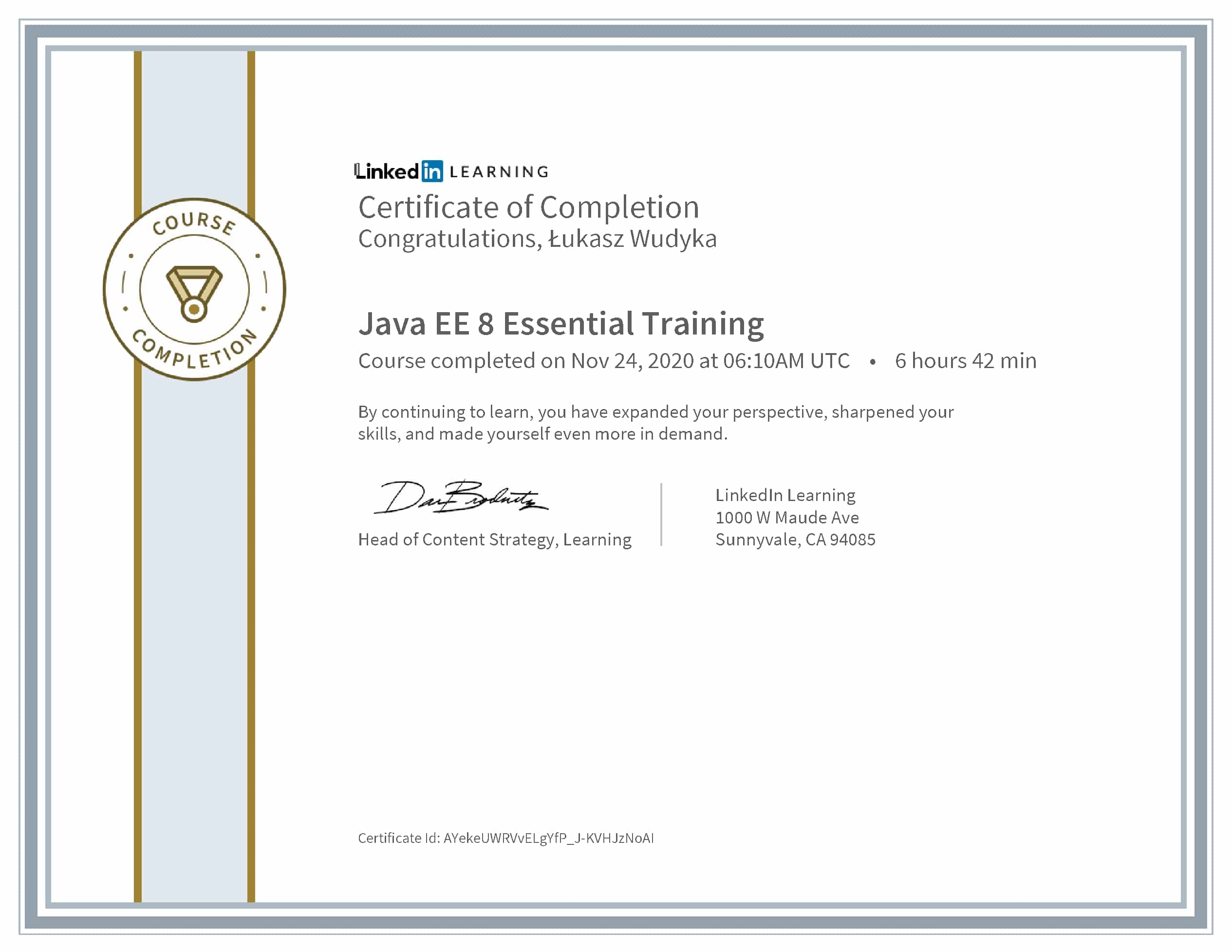 Łukasz Wudyka certyfikat LinkedIn Java EE 8 Essential Training