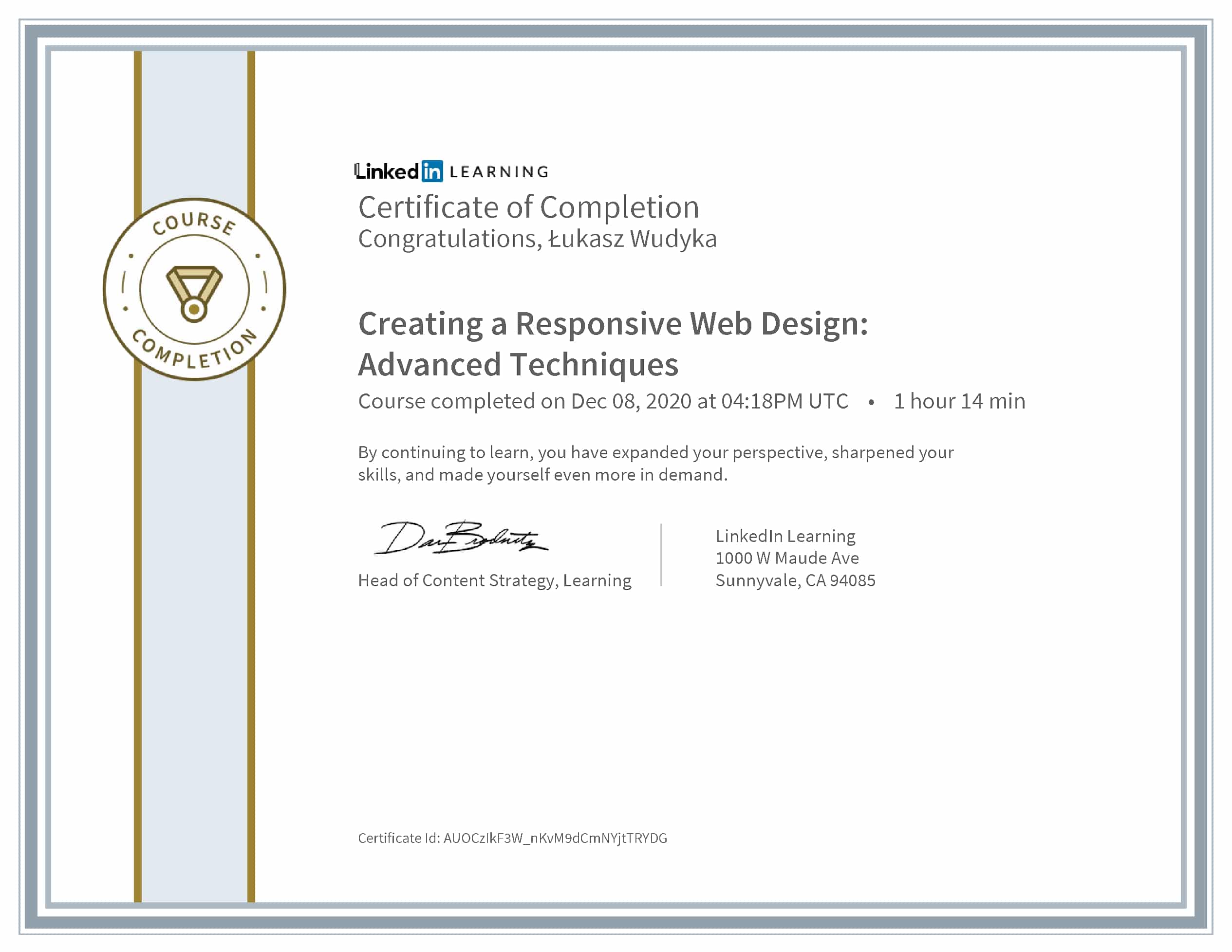 Łukasz Wudyka certyfikat LinkedIn Creating a Responsive Web Design: Advanced Techniques