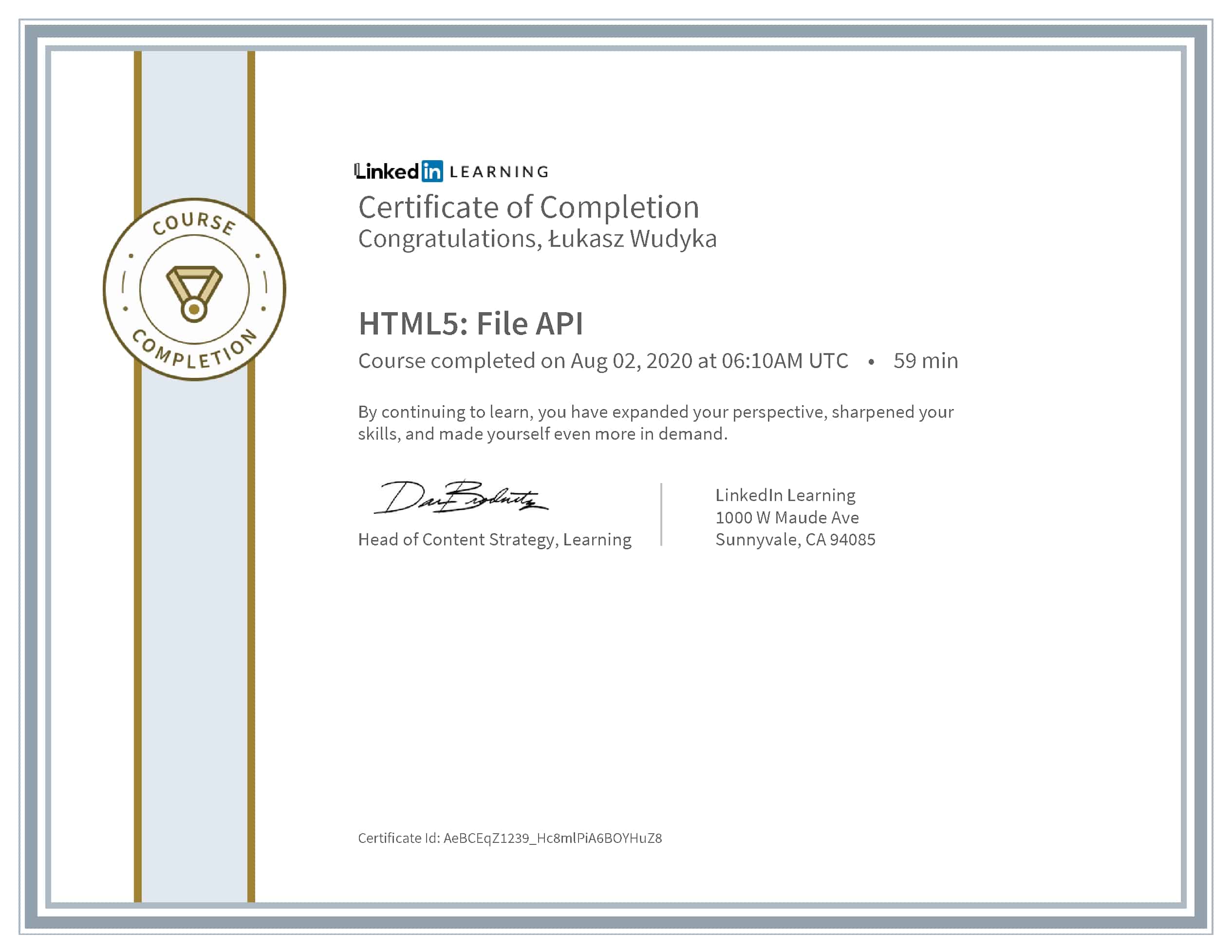 Łukasz Wudyka certyfikat LinkedIn HTML5: File API