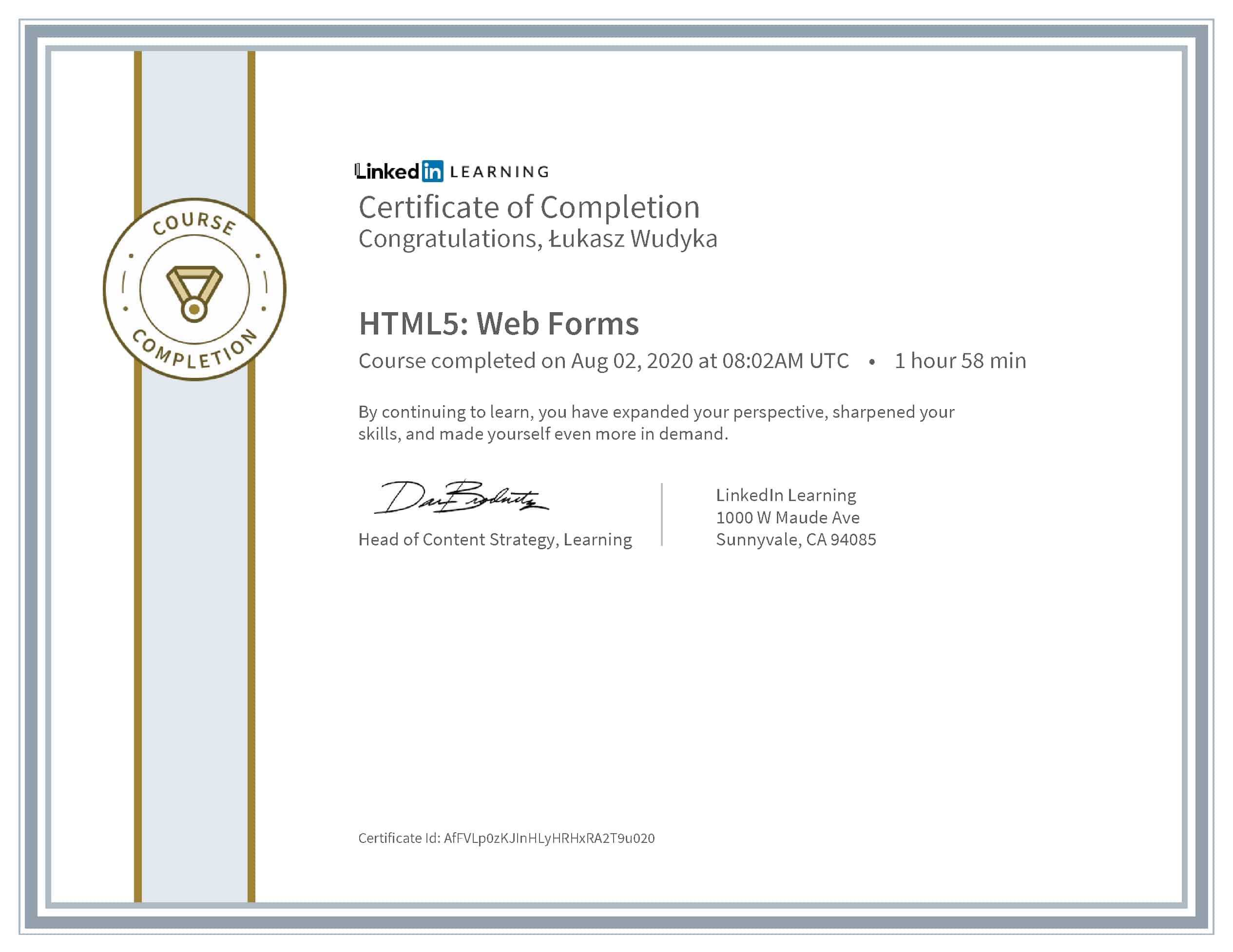 Łukasz Wudyka certyfikat LinkedIn HTML5: Web Forms